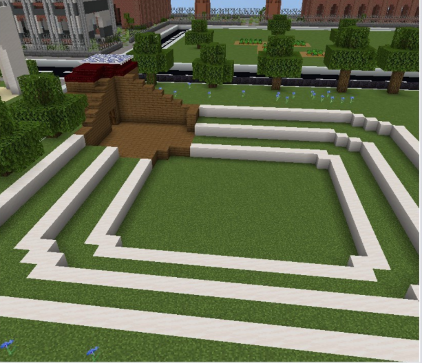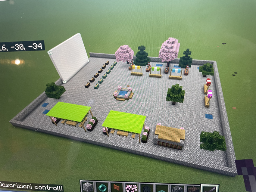 A gruppi, è stato realizzato su Minecraft Education il progetto disegnato su carta. Per rendere fedelmente gli spazi reali nel mondo virtuale, ciascun gruppo ha potuto consultare Google Earth.