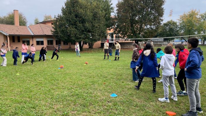 Mercoledì 22 ottobre, presso la scuola primaria Diego Valeri dell’IC5 Coletti, un gruppo di Alpini è riuscito nell’intento di far vivere ai bambini un momento di condivisione con il rito dell’arrosto sul fuoco, l’assaggio, nel tradizionale cartoccio, e i giochi in giardino, animati dagli Scout della parrocchia San Paolo di Treviso.
