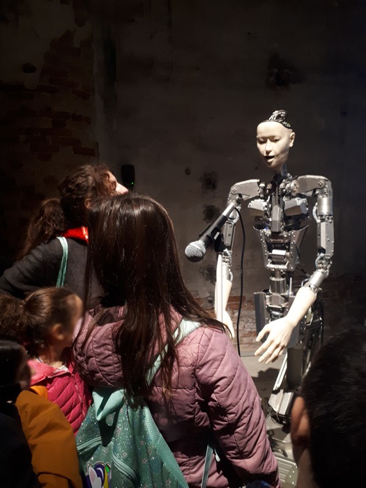 Durante il percorso abbiamo incontrato un umanoide che rispondeva in tempo reale alle nostre domande. Dobbiamo confessare che a fronte di domande che partivano dalla richiesta di quante… o quali, non sempre il nostro robot rispondeva con pertinenza. Restiamo comunque superiori noi umani…
