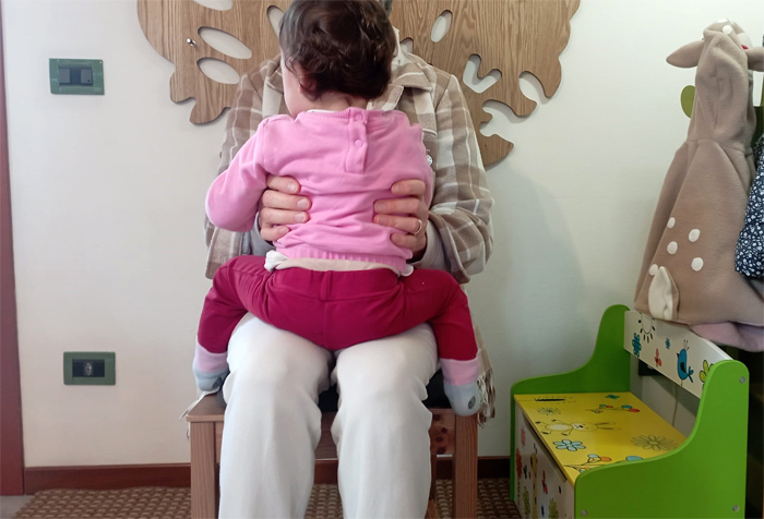 (L’adulto tiene la bambina o il bambino sulle sue ginocchia e la/o fa saltare cantando).