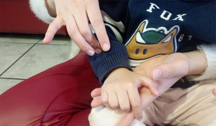 Il cambio di tono di voce con le sue diverse sonorità, ritmi, ripetizioni, insieme al tocco confortante di una carezza o di un abbraccio aiutano a stemperare la tensione.