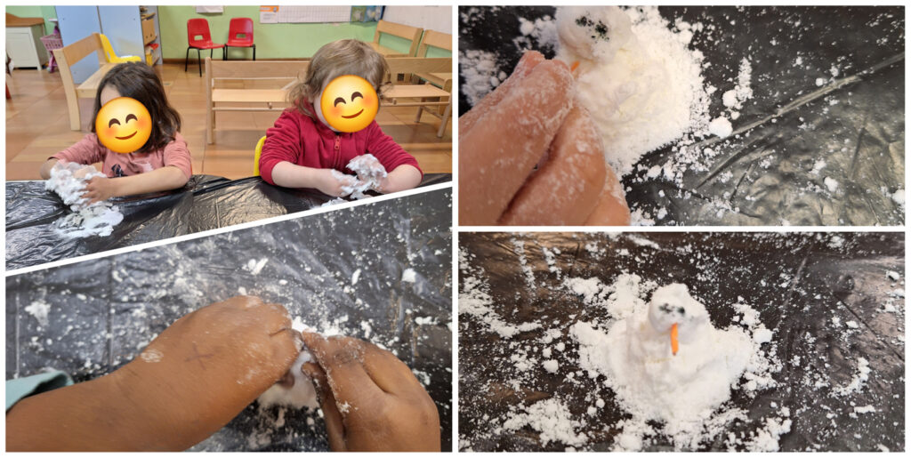 L’attività ha stimolato tutti i sensi: la vista, grazie al colore candido della neve; il tatto, per la sua consistenza morbida e fresca; l’olfatto, per il profumo delicato della schiuma. Ma soprattutto ha acceso l’entusiasmo e la meraviglia, elementi fondamentali per un apprendimento significativo.
