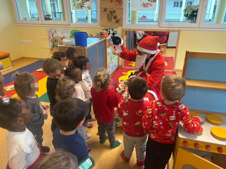 Nell’ultima settimana prima di Natale anche i bambini hanno vissuto un momento di festa tutti insieme, con canti natalizi e una merenda speciale. Inoltre c’è stata la visita di Babbo Natale, che ha portato ad ogni bambino un piccolo dono dolce, rendendo la mattinata ancora più emozionante.