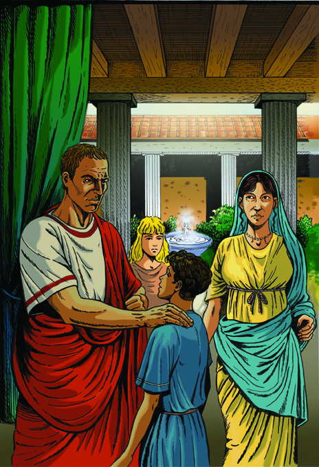 La ragazzina, Eunice, è condotta a Roma, dove viene a contatto con la grandiosità di quella città. Viene inserita come serva in una nobile famiglia romana e qui trova un ambiente sereno in cui viene trattata come una figlia.
