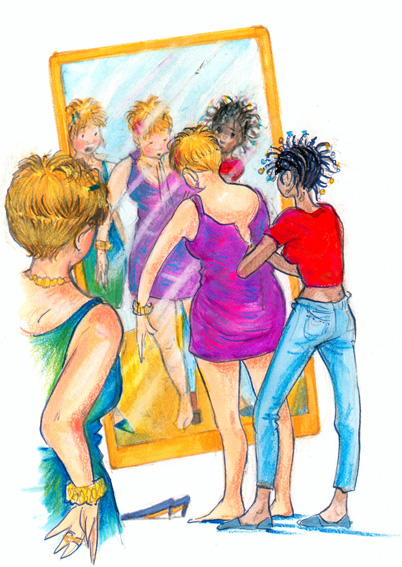 «Quando ti deciderai a tagliarti quelle trecce? Non vedi che ti cadono sugli occhi?» imperversava Mafalda. «Ahi, mi fai male! Possibile che non riesca a chiudere una cerniera!»