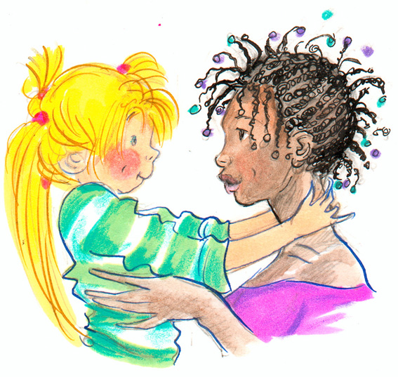 «Finalmente se ne sono andate» esclamò Azzurra saltando sulle spalle a Fatim e accoccolandosi subito dopo addosso a lei!