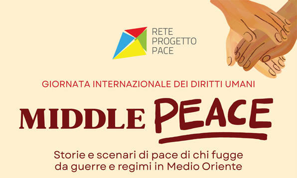 Rete Progetto Pace, per celebrare l’anniversario della Dichiarazione universale dei diritti umani, promuove l’incontro intitolato Middle Peace – Storie e scenari di pace di chi fugge da guerre e regimi in Medio Oriente.