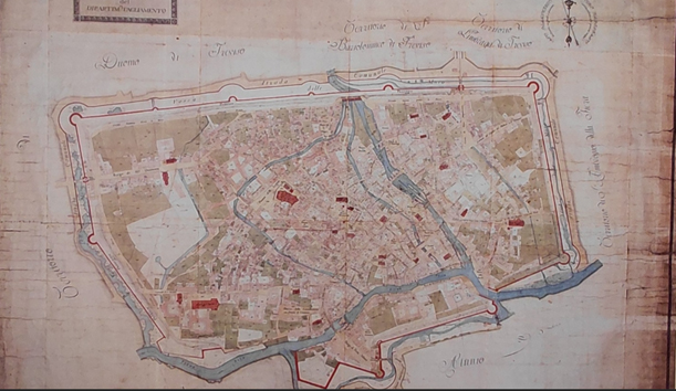 È stato infine interessante vedere come le mura erano disegnate in una mappa di Treviso realizzata dal catasto Napoleonico.