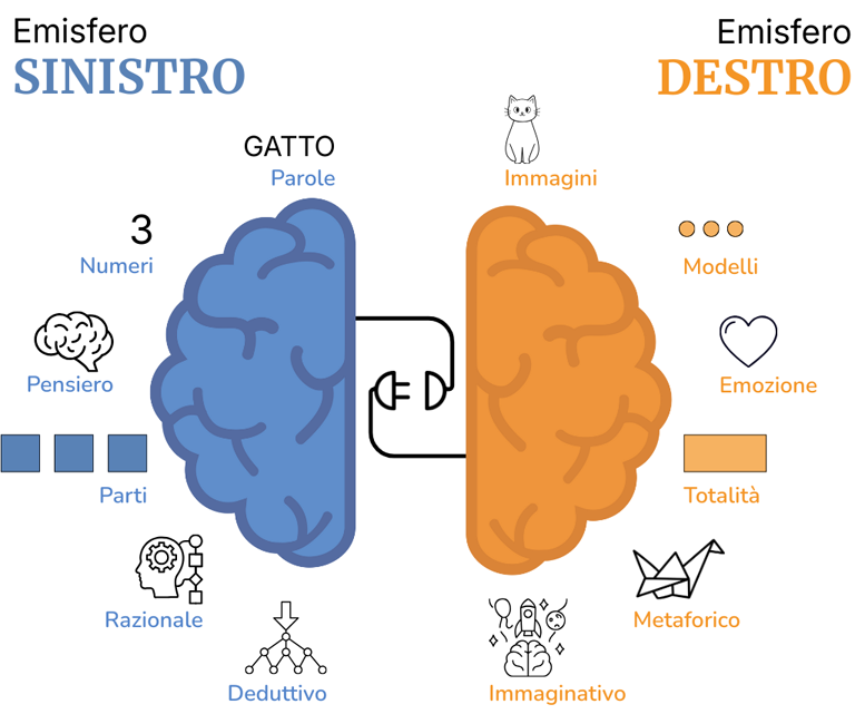 Al contrario, il pensiero per immagini non lineari, emozioni ed esperienze corporee coinvolge maggiormente l’emisfero destro.