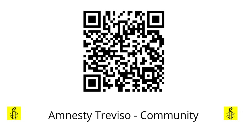 Se desiderate saperne di più sulle attività del gruppo di Treviso di Amnesty International, potete iscrivervi alla Community di Whatsapp dove postiamo notizie, attività, eventi riguardanti il territorio, e rimanere sintonizzati con noi, semplicemente scansionando il QR code che vedete qui sotto.
