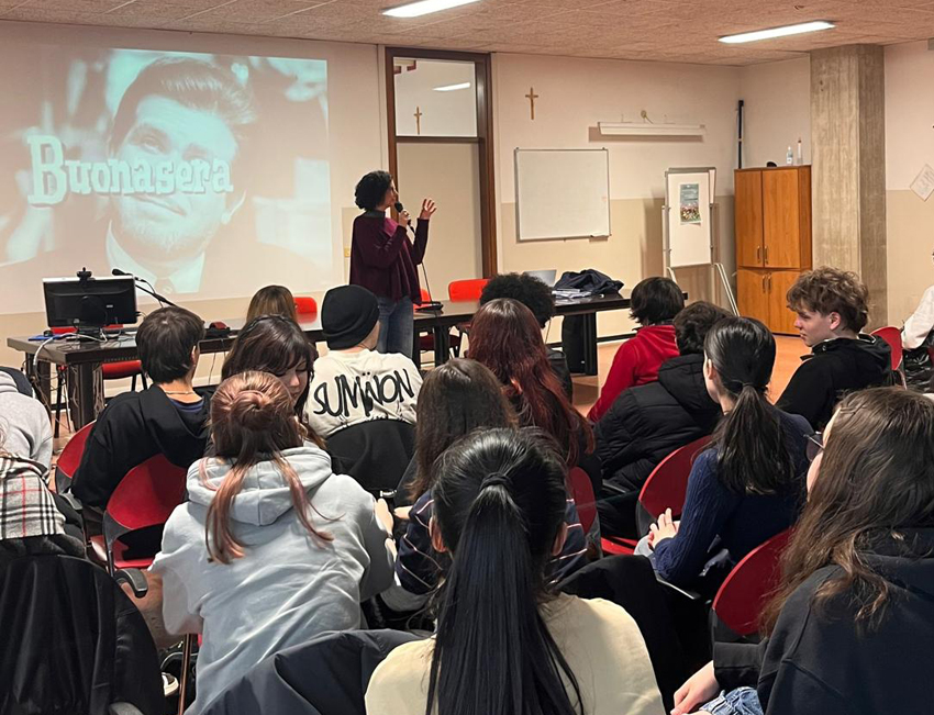 La seconda giornata formativa si è svolta il giorno dopo all’istituto “Palladio”, dove abbiamo ragionato maggiormente sul linguaggio del cinema, sulla tecnica, su cosa volevamo comunicare noi attraverso il prodotto che stiamo realizzando. A parlare con noi ancora una volta è stato Francesco Montagner che ci ha inizialmente guidato nell’interpretazione del suo corto Asteriòn, da un punto di vista non solo simbolico ma anche tecnico, raccontandoci il dietro le quinte della produzione e i vari processi della post-produzione. Seguito da Riccardo Costantini, direttore del Pordenone Docs Fest, che ha presentato il festival e le sue iniziative e ci ha fatto comprendere l’importanza che hanno i documentari per far arrivare realtà “scomode” alla nostra attenzione. Con Paola Brunetta, critica cinematografica e docente di materie letterarie presso il Liceo Artistico, abbiamo affrontato il tema del corpo della donna guardando e poi riflettendo sul terzo episodio del film Signore & Signori di Pietro Germi. Tema che abbiamo rivisto anche nel corto d’animazione The Meat Seller di Margherita Giusti. Nell’ultima parte della giornata, la parola è stata passata a noi. Ci siamo aperti riguardo al rapporto che viviamo con il nostro corpo, e a come siano fortemente nocive le piattaforme, che influiscono sulla percezione di noi stessi e favoriscono l’alienazione.