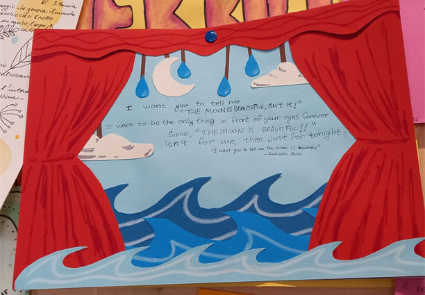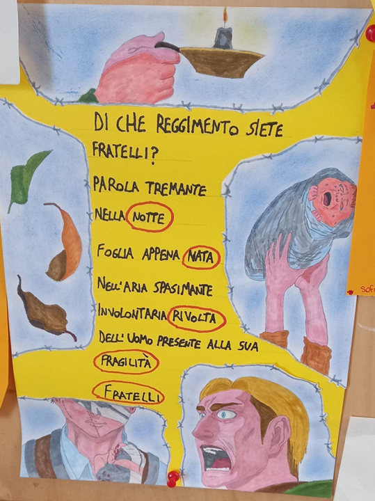 Il lavoro, realizzato dai ragazzi nelle ore curricolari di Lettere, ha portato gli studenti a riprodurre in modo creativo su cartoncino, versi da loro composti o liberamente scelti da alcuni componimenti o da canzoni che molta affinità hanno con il mondo della poesia.